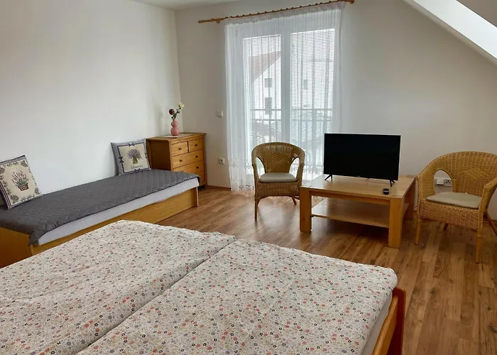 The 1-room Apartman Tereza includes a balcony and overlooks the garden. Guests staying in this apartment will enjoy the convenience of hair dryers and bath sheets in the bathroom. A separate toilet can also be found.